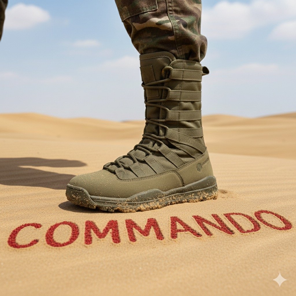 * العلامة التجارية: شعار "Commando" من إنتاج هذه العلامة التجارية المتخصصة في الأحذية العسكرية والتكتيكية.
